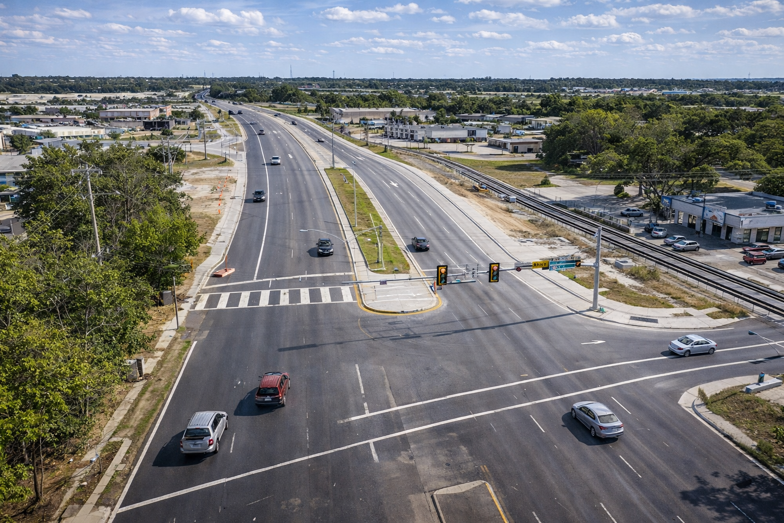 Engineering services included roadway geometry design, utility coordination, traffic control planning, and construction phase support to maintain traffic operations during construction.